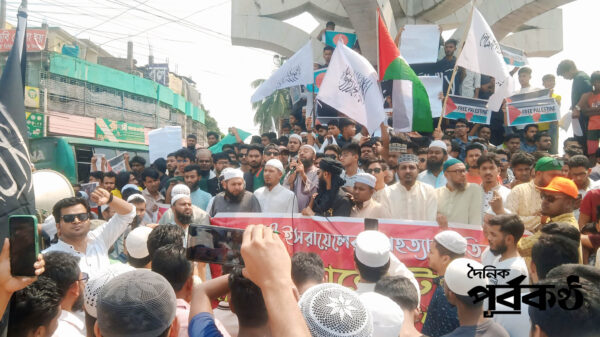 ইসরায়েলি বাহিনীর নির্মম বোমা হামলায় ফিলিস্তিনের গাজায় হত্যার প্রতিবাদে কিশোরগঞ্জের ভৈরবে বিক্ষোভ মিছিল ও প্রতিবাদ সমাবেশ হয়েছে।