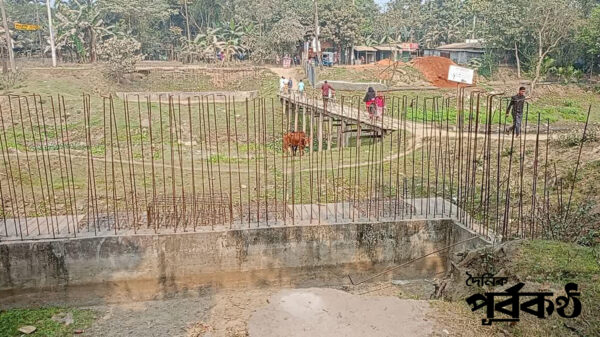 ২৯ জানুয়ারি বুধবার নির্বাহী প্রকৌশলী আমিরুল ইসলামের সাথে কথা হলে তিনি জানান, ৪০ মিটার দীর্ঘ সেতুটি নির্মাণের জন্য শফিকুল আলমের ‘এইচটিবিএল-এসএসি’ ঠিকাদারি প্রতিষ্ঠানের সাথে চুক্তি হয়েছিল ২০২১ সালের সালের ৩ নভেম্বর। কাজটি শেষ করার কথা ছিল ২০২২ সালের ২৯ নভেম্বর। বরাদ্দ ছিল তিন কোটি ১১ লাখ টাকা। কিন্তু সেতুর দুই পাশে দু’টি এভার্টমেন্ট নির্মাণ করে প্রায় দুই বছর আগে এক কোটি ৩৯ লাখ টাকা উত্তোলন করে ঠিকাদার চালে গেছেন। আর কাজে ফিরে আসেননি। সেতুর গার্ডার বসানোর কাজ বাকি ছিল। এর জন্য মাস দুয়েকের কাজ ছিল। তবে ঠিকাদার কাজের তুলনায় বাড়তি বিল নেননি বলে নির্বাহী প্রকৌশলী আমিরুল ইসলাম জানিয়েছেন।