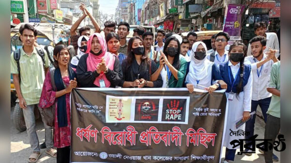 ধর্ষকদের গ্রেপ্তার ও বিচার দাবিতে কিশোরগঞ্জে শিক্ষার্থীরা বিক্ষোভ মিছিল করেছেন। ২৫ ফেব্রুয়ারি মঙ্গলবার দুপুরে শহরের ওয়ালি নেওয়াজ খান কলেজ ক্যাম্পাস থেকে সাধারণ শিক্ষার্থীর ব্যানারে মিছিলটি শুরু হয়। ব্যানারে লেখা ছিল ‘দড়ি লাগলে দড়ি নে, ধর্ষকদের ফাঁসি দে’ এবং ‘ধর্ষক তুই ধ্বংস হ, শাস্তি তোর অনিবার্য’। কলেজ ক্যাম্পাস থেকে শিক্ষার্থীরা বিক্ষোভ মিছিল নিয়ে শহরের বিভিন্ন সড়ক প্রদক্ষিণ করেন। এ সময় তাঁরা সকল নারীদের নিরাপত্তার দাবিতে শ্লোগান দেন। সেই সাথে ধর্ষকদের প্রতিরোধ, সকল ধর্ষককে গ্রেপ্তার ও তাদের দৃষ্টান্তমূলক শাস্তির দাবিতেও শ্লোগান দেন। বিক্ষোভ মিছিলটি পুনরায় কলেজ ক্যাম্পাসে গিয়ে শেষ হয়।