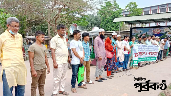 সংগঠনের জেলা কমিটির সাধারণ সম্পাদক সাইফুল জুয়েলের সভাপতিত্বে মানববন্ধনে বক্তৃতা করেন সদস্য রুহুল আমিন, কামরুন্নাহার, চন্দ্রা রাণী সরকার, লুৎফুল কবীর, আব্দুর রহমান, আব্দুল কাদির হিরো প্রমুখ।