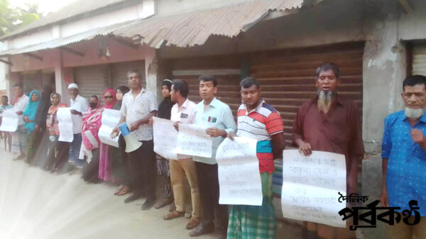 বাংলাদেশ শ্রমিক কর্মচারী ফেডারেশনের মানববন্ধন -পূর্বকণ্ঠ