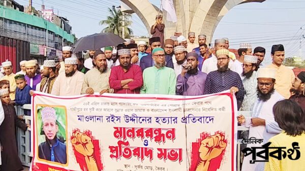 সারা বাংলাদেশে পুলিশের কোন জানাজায় অংশ না নিতে ভৈরবে সর্বস্তরের সুন্নী জনতার আয়োজনে মানববন্ধন ও প্রতিবাদ সভায় একথা বলেন বক্তারা। বক্তারা আরো বলেন, মাওলানা রইছ উদ্দিনের হত্যার সাথে জড়িত খুনীদের দ্রুত আইনের আওতায় না আনলে মহাসড়ক অবরোধসহ গাজীপুর থানা ঘেরাও কর্মসূচি ঘোষণা করা হবে।