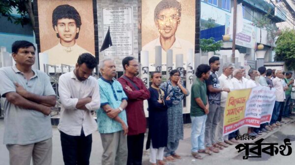 কৃষক ক্ষেতমজুন সংগ্রাম পরিষদ বিভিন্ন দাবিতে ময়মনসিংহে বিক্ষোভ সমাবেশ ও মানববন্ধন কর্মসূচি পালন করেছে। ২৯ এপ্রিল মঙ্গলবার বিকালে শহরের ফিরোজ জাহাঙ্গীর চত্বরে কৃষক সমিতির সভাপতি রবীন্দ্র ভট্টাচার্যের সভাপতিত্বে কর্মসূচিতে বক্তৃতা করেন সিপিবির জেলা সভাপতি অ্যাডভোকেট এমদাদুল হক মিল্লাত, কৃষক সমিতির কেন্দ্রীয় সাধারণ সম্পাদক মোতাহার হোসেন, ক্ষেতমজুর ও কৃষক সংগঠনের কেন্দ্রীয় সাধারণ সম্পাদক অজিত দাস, কৃষক সমিতির সদস্য ইসহাক আলী, সমাজতান্ত্রিক ক্ষেতমজুর ও কৃষক ফ্রন্ট নেতা ইমাম হোসেন খোকন, কৃষক ফোরামের সদস্য আজহারুল ইসলাম আজাদ প্রমুখ। সঞ্চালনা করেন ক্ষেতমজুর সমিতির সাধারণ সম্পাদক সুশান্ত দেবনাথ খোকন।
