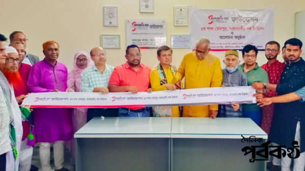 ২০ জুন শুক্রবার বেলা ১২টায় অত্যন্ত আনন্দঘন পরিবেশে বেসরকারি স্বেচ্ছাসেবী প্রতিষ্ঠান সম্মিলন ফাউন্ডেশনের ৫ম শাখা মনোহরদী উপজেলার রামপুর শাখার ফিতা কেটে শুভ উদ্বোধন করা হয়। এ উপলক্ষ্যে সম্মিলন ফাউন্ডেশনের সু-স্বজ্জ্বিত অফিস কার্যালয়ে এক আলোচনা সভার আয়োজন করা হয়। প্রতিষ্ঠানটির নির্বাহী পরিচালক, বিশিষ্ট শিক্ষানুরাগী, সমাজসেবক ও সংগঠক মুহাম্মদ ছামিউজ্জামান সুমনের সার্বিক ব্যবস্থাপনায় সম্মিলন ফাউন্ডেশনের চেয়ারম্যান মো. মোস্তাফিজুর রহমান জাবেদ এর সভাপতিত্বে আলোচনা সভায় বক্তব্য রাখেন, বীর মুক্তিযোদ্ধা চিকিৎসক সন্তোষ কুমার সাহা, ভৈরব রিপোর্টার্স ক্লাব ও ইউনিটি ও নিরাপদ সড়ক চাই এর সাধারণ সম্পাদক মো. আলাল উদ্দিন, সমাজসেবক ও নিসচার সাবেক সহ-সভাপতি মো. মনিরুজ্জামান ময়না, সম্মিলন ফাউন্ডেশনের সহ-সভাপতি প্রকৌশলী আতিউর রহমান অপু, সম্মিলন বৃত্তি প্রকল্পের আহবায়ক তপন কুমার সাহা, রামপুর শাখার ব্যবস্থাপক শিলা বিশ্বাস প্রমুখ। বক্তারা স্বনামধন্য সম্মিলন ফাউন্ডেশনের ৫ম শাখাটি মনোহরদীর রামপুরে উদ্বোধন করায় সম্মিলন ফাউন্ডেশনের সকলকে ধন্যবাদ ও কৃতজ্ঞতা জানান মনোহরদীর রাজনৈতিক, ব্যবসায়ী, জনপ্রতিনিধিসহ সর্বস্তরের মানুষ এই প্রতিষ্ঠানটিকে সার্বিক সহযোগিতা করার আশ্বাস প্রদান করেন। অনুষ্ঠানে সম্মিলন ফাউন্ডেশনের পরিচালক, কর্মকর্তা কর্মচারীসহ বিভিন্ন এলাকার বিভিন্ন শ্রেণি পেশার মানুষজন উপস্থিত ছিলেন। অনুষ্ঠানটি সঞ্চালনায় ছিলেন, ঢাকা বিশ্ববিদ্যালয়ের মেধাবী ছাত্র ব্যাংকার মো. আল-আমিন।