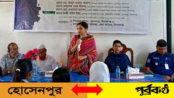 কিশোরগঞ্জের হোসেনপুরে মাদকদ্রব্যের অপব্যবহার রোধেকল্পে মাদকবিরোধী আলোচনা সভা অনুষ্ঠিত হয়েছে। বৃহস্পতিবার (২৩ অক্টোবর) সকালে গলাচিপা মাধ্যমিক বিদ্যালয়ে উপজেলা প্রশাসন ও জেলা মাদকদ্রব্য নিয়ন্ত্রণ অধিদপ্তরের যৌথ উদ্যোগে এ আলোচনা সভার আয়োজন করা হয়।