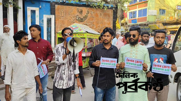 ভৈরবকে জেলা ঘোষণার দাবিতে ২৭ অক্টোবর সোমবার সকাল ১০টায় ভৈরব রেলওয়ে জংশন স্টেশনে অবস্থান নিয়ে ঢাকা- চট্টগ্রাম, ঢাকা-সিলেট, ঢাকা-নোয়াখালীসহ পূর্বাঞ্চলীয় জোনের রেলপথ অবরোধ করে ছাত্র ও যুবসমাজের নেতাকর্মীরা। সকাল ১০টা ২৫ মিনিটে নোয়াখালী থেকে ঢাকাগামী উপকূল এক্সপ্রেস ট্রেনটি ভৈরব স্টেশনে এসে আটকা পড়ে।