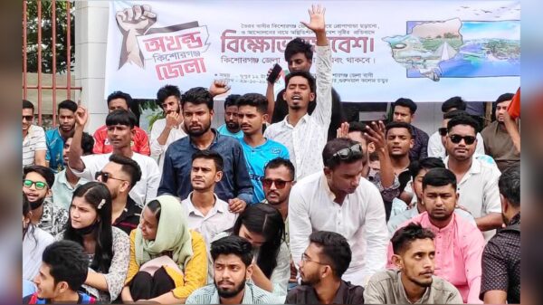 ভৈরব ও বাজিতপুর জেলা আন্দোলনের মাঝেই ভৈরবে ট্রেনে পাথর নিক্ষিপের বিচার ও ঐক্যবদ্ধ কিশোরগঞ্জের দাবিতে কিশোরগঞ্জ জেলাবাসীর ব্যানারে বিক্ষোভ সমাবেশ হয়েছে। গতকাল বুধবার দুপুরে জেলা শহরের সরকারি গুরুদয়াল কলেজ প্রাঙ্গনে কেন্দ্রীয় শহীদ মিনারে এই সমাবেশের আয়োজন করা হয়। এতে বক্তৃতা করেন জাতীয় নাগরিক পার্টির জেলা সমন্বয়কারী ইকরাম হোসেন, জেলা ছাত্র দলের সাবেক প্রচার সম্পাদক জগলুল হাসান চয়ন, এনসিপি নেতা ফয়সাল প্রিন্স, মামুন মিয়া, জেলা ছাত্র অধিকার পরিষদের সহ-সভাপতি সালমান এম সাকিব, সরকারি মহিলা কলেজ ছাত্র দলের সভাপতি নূসরাত জাহান, সরকারি গুরুদয়াল কলেজ ছাত্র দলের যুগ্ম-আহবায়ক এমদাদুল হক নাঈম, শেখ মুদাসসির তুশি প্রমুখ।