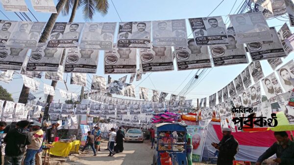 কেন্দ্রের বাইরে দেখা গেছে, বিভিন্ন প্রার্থীর শত শত সমর্থক প্রার্থীদের ছবি ও প্রতীক সংবলিত প্লাকার্ড নিয়ে ভোটারদের দৃষ্টি আকর্ষণ করছেন। এসময় ব্যস্ততম স্টেশন রোডে যানবাহন চলাচলে বেশ বিঘ্ন ঘটতে দেখা গেছে। পুরো এলাকা প্রার্থীদের পোস্টারে ছেয়ে আছে। রয়েছে প্রত্যেক প্রার্থীর নিজস্ব প্রচারণা কেন্দ্র।